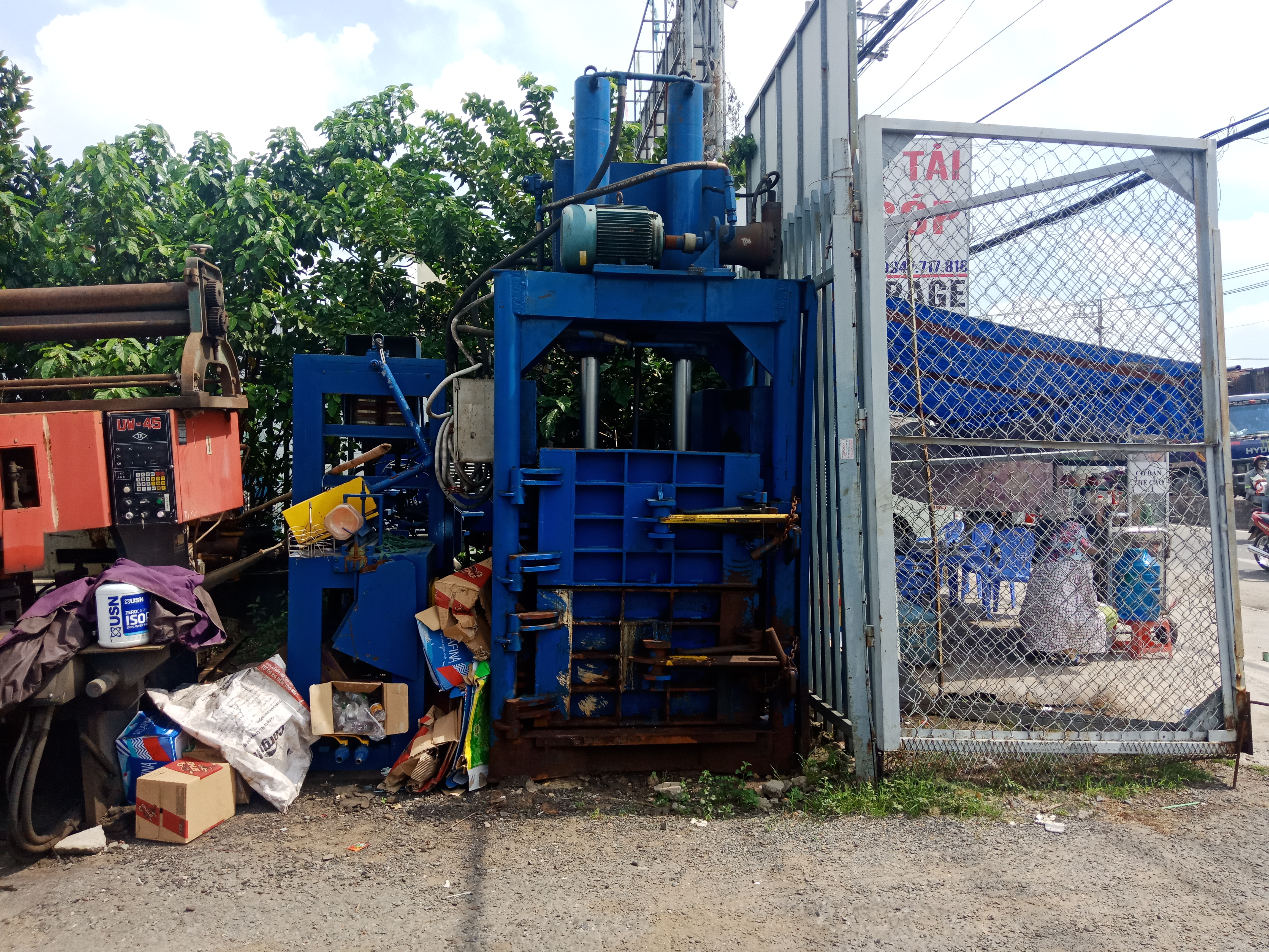Máy ép rác thải sinh hoạt.